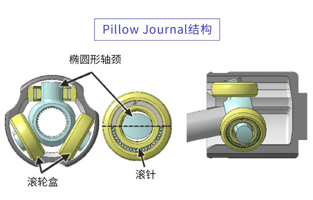 “PTJ”是一種移動(dòng)型CVJ(等速萬向節(jié)),它采用了NTN獨(dú)有的“Pillow Journal結(jié)構(gòu)”,即使工作角度比較大的時(shí)候也能抑制內(nèi)部組件滾輪盒的傾斜。