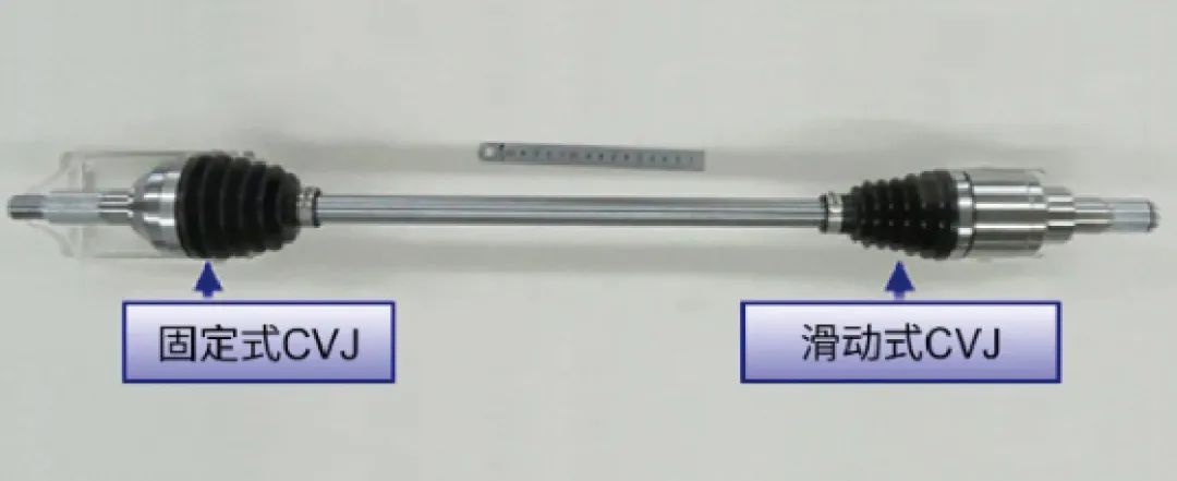 驅(qū)動(dòng)軸是一個(gè)將電機(jī)或其他動(dòng)力傳動(dòng)單元的動(dòng)力(扭矩)傳遞到輪胎的部件。它由一個(gè)輪胎側(cè)的固定式等速萬向節(jié)(CVJ)、一個(gè)動(dòng)力傳動(dòng)側(cè)的移動(dòng)式等速萬向節(jié)(CVJ)以及連接這兩個(gè)CVJ的軸組成。